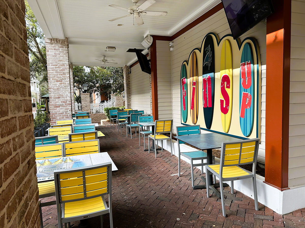 This covered patio space sits out on the Promenade and offers your group a great outdoor space in the lively atmosphere of Baytown.